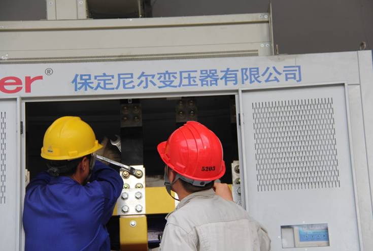 老楊正在檢查變壓器母排的連接質(zhì)量
