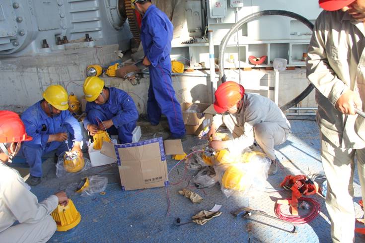 老楊正在和同伴們安裝照明燈