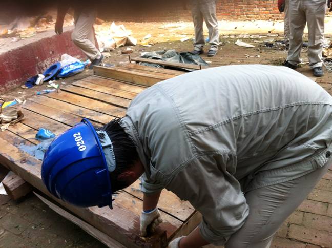 為盡快完成清理工作,大家不停地忙碌著,沒人在意汗水浸濕的衣服。在這一天,大家交流的不是抱怨、不是疲勞,而是因勞動(dòng)交流產(chǎn)生的融合。