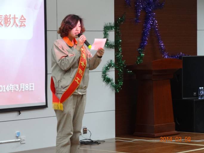 會議一開始,集團工會主席趙愛華發(fā)言總結(jié)一年來的女工工作情況。隨后主持人宣布獲得今年各類先進的女工名單并進行頒獎。