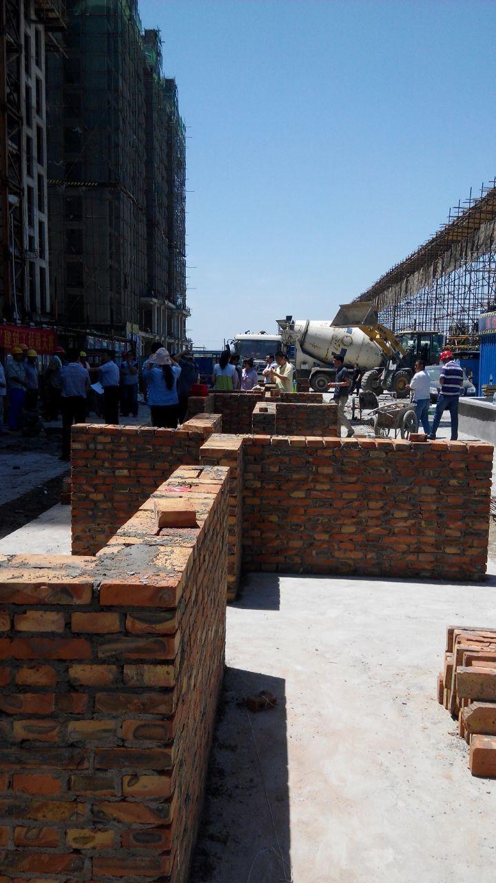 房地公司下屬華恒建筑公司同來(lái)自我區(qū)的華捷建筑公司、三豐建筑公司、市政建筑公司共四家建筑施工企業(yè)的24名選手參加比賽,選手們都是我區(qū)建筑施工隊(duì)伍中的佼佼者,比賽內(nèi)容分理論知識(shí)(筆試)和實(shí)際操作能力兩大項(xiàng),最后評(píng)委根據(jù)理論成績(jī)與實(shí)際操作比賽評(píng)分標(biāo)準(zhǔn)的方法對(duì)垂直度、平整度、灰縫厚度、水平灰縫砂漿飽滿(mǎn)度、表面清潔度等20多項(xiàng)評(píng)分。