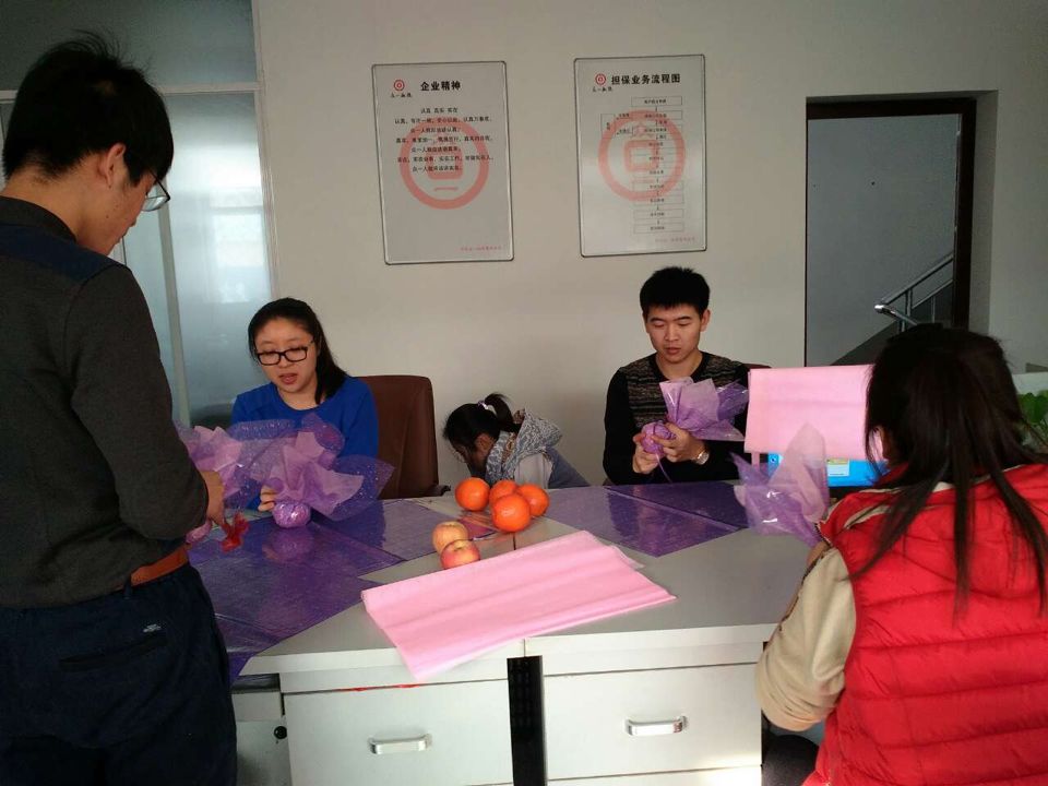 員工們把親手包好的平安果連同節(jié)日的祝福送到每一個(gè)銀行工作人員手中,雖然禮輕但情意濃重,工作人員紛紛表示感謝,并感受到擔(dān)保公司貼心的服務(wù)和溫情的祝福,場面一片溫馨熱鬧。