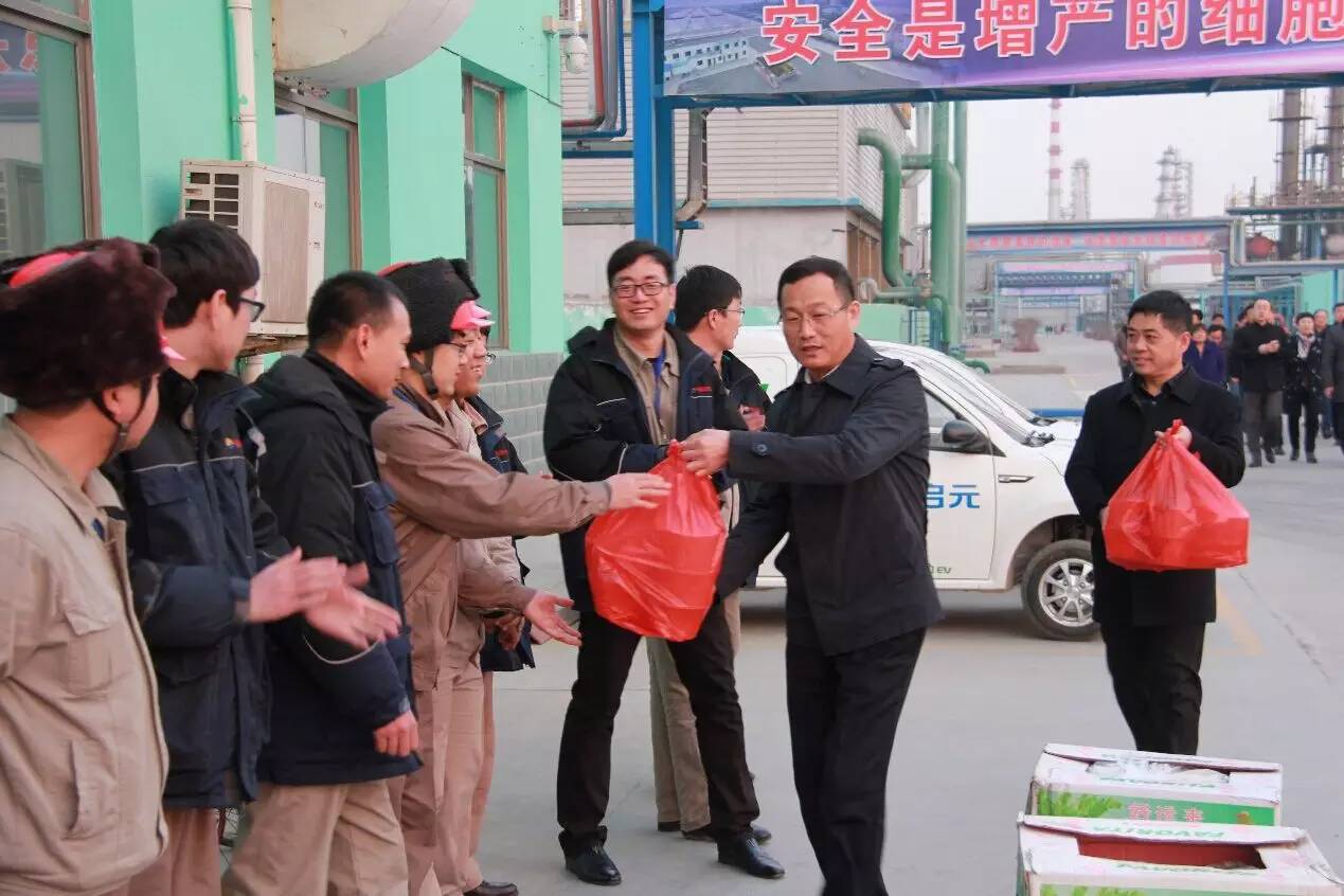 集團(tuán)公司領(lǐng)導(dǎo)一行先后來到捷馨建材公司地?zé)岜谜?、華辰加油站、新欣園、新啟元公司為值守人員送去水果、餃子等慰問品,并送上新春祝福。