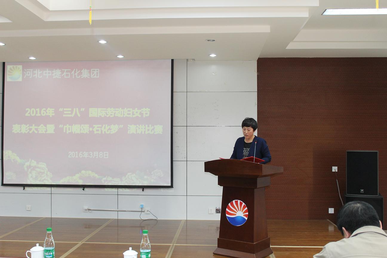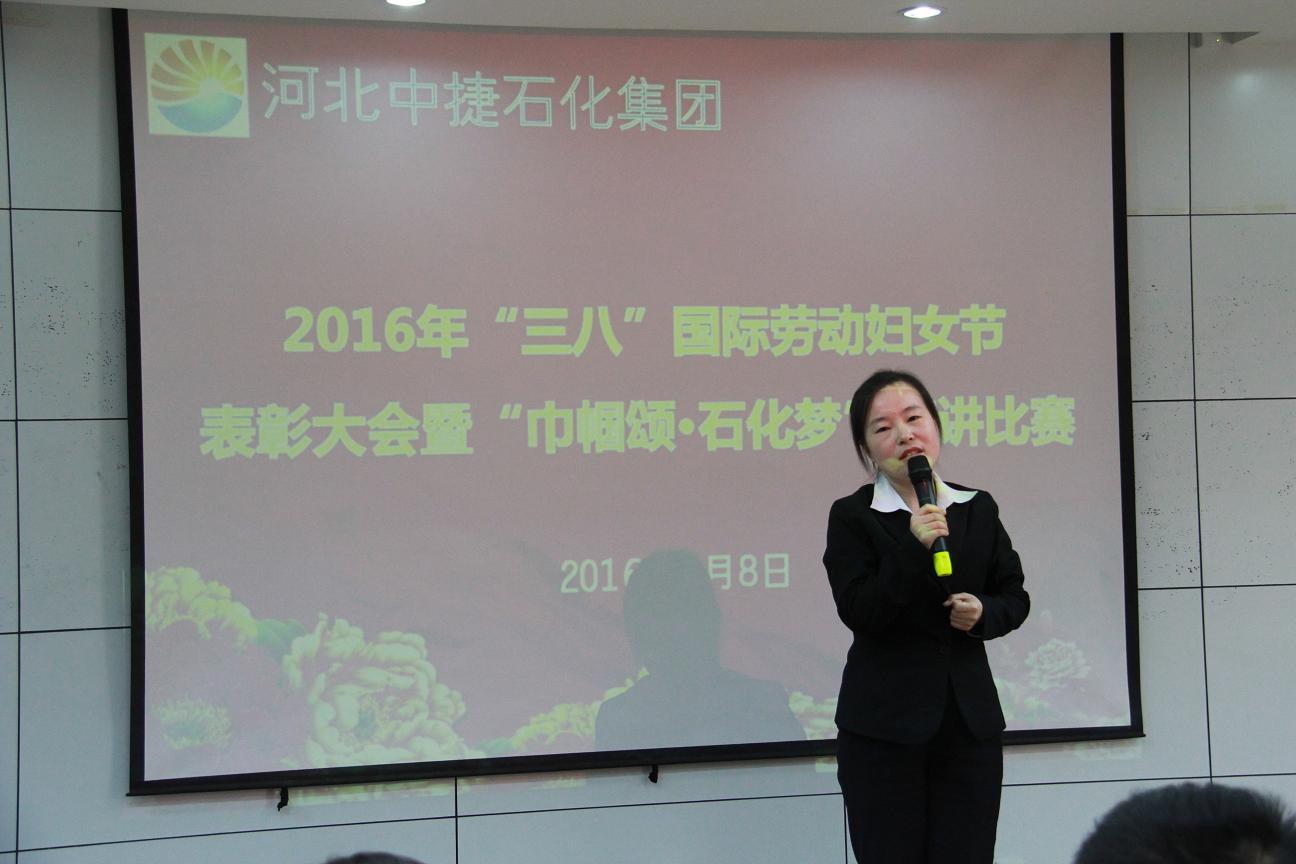 3月8日,是國際勞動婦女節(jié),為了讓公司的女工度過一個輕松快樂的“三?八”婦女節(jié),同時表彰先進女工,河北中捷石化集團2016年“三八”婦女節(jié)表彰大會暨“巾幗頌?石化夢”演講比賽于3月8日下午隆重舉行,集團公司及各所屬單位領(lǐng)導、嘉賓評委、員工代表共計70余人參加了此次會議。
