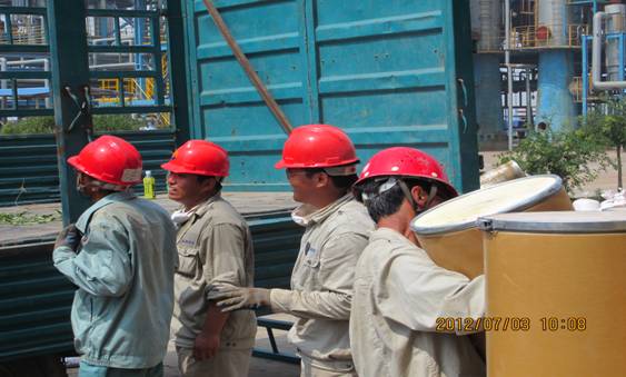 員工們正在積極搬卸催化劑