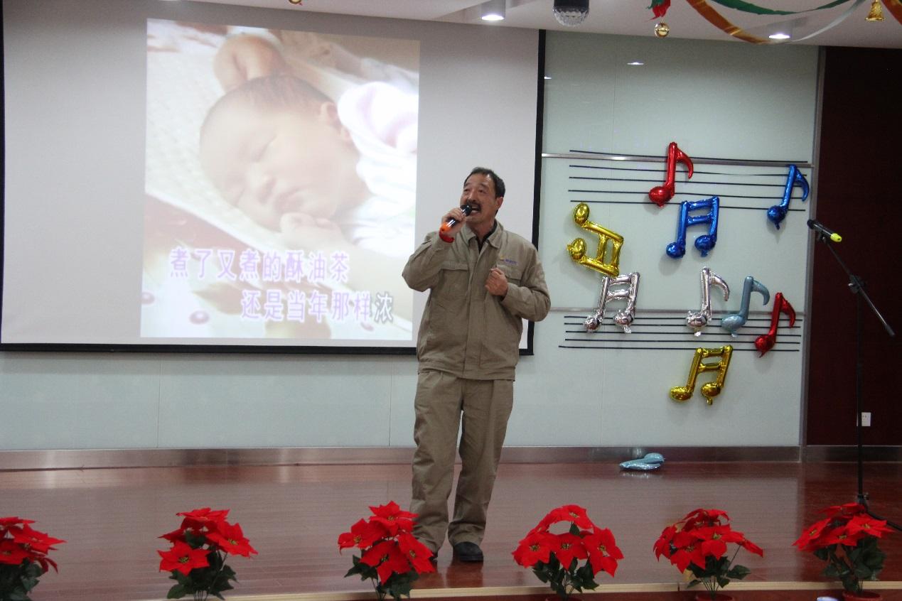 歌聲悠揚,打動人心,或激情澎湃,或婉約深情。有開場熱舞激情四射,有吉他彈唱才華橫溢,有韻律說唱贊美石化,有經(jīng)典老歌催人懷舊。在舞臺上,20多歲的新員工和40多歲的老員工同臺競技、深情演繹、奉上佳作;在舞臺下,100多名觀眾專注傾聽、情隨歌轉、獻上掌聲。運行八部的女歌手王曉文將自己的母親請到現(xiàn)場,共同演唱了一首《何不瀟灑走一回》,展現(xiàn)出母親對女兒深厚的感情和對事業(yè)的支持。過程中還創(chuàng)新設置了微信公眾號現(xiàn)場答題競猜環(huán)節(jié),現(xiàn)場觀眾獲勝者得到了尼特拉紅酒作為獎勵。
