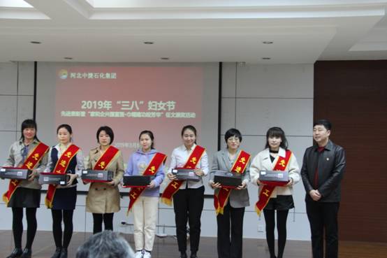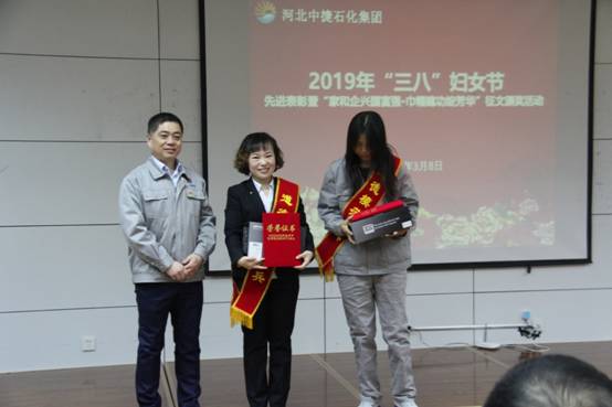 3月8日上午,河北中捷石化集團在科研樓六樓會議室組織舉辦了2019年“三八”婦女節(jié)先進表彰暨“家和企興國富強?巾幗建功綻芳華”征文頒獎活動。集團公司黨政領(lǐng)導(dǎo),各單位黨(總)支部領(lǐng)導(dǎo)、先進女職工、征文獲獎?wù)呒芭ご淼?0余人參加活動。中捷產(chǎn)業(yè)園區(qū)宣傳部劉金林部長出席了本次活動。