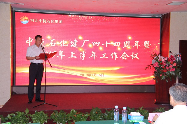 7月16日上午9:30,河北中捷石化集團(tuán)在華悅凱旋大酒店4樓宴廳隆重召開建廠44周年暨2019年上半年工作會(huì)議,集團(tuán)公司董事長(zhǎng)王振華、總經(jīng)理喬樹華等集團(tuán)領(lǐng)導(dǎo)及各級(jí)管理人員共計(jì)74人參加會(huì)議,整個(gè)大廳座無虛席。大會(huì)由集團(tuán)公司黨委書記于國(guó)臣同志主持。