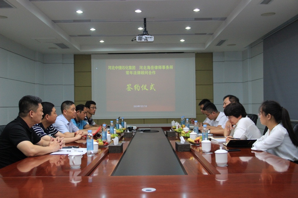 2019年7月17日,河北中捷石化集團迎來了一批尊貴的客人,河北海岳律師事務(wù)所首席法律顧問張建軍一行5人蒞臨集團公司,與集團公司就常年法律顧問合作舉行了交流會晤。集團公司總經(jīng)理喬樹華帶隊參加了此次會議。