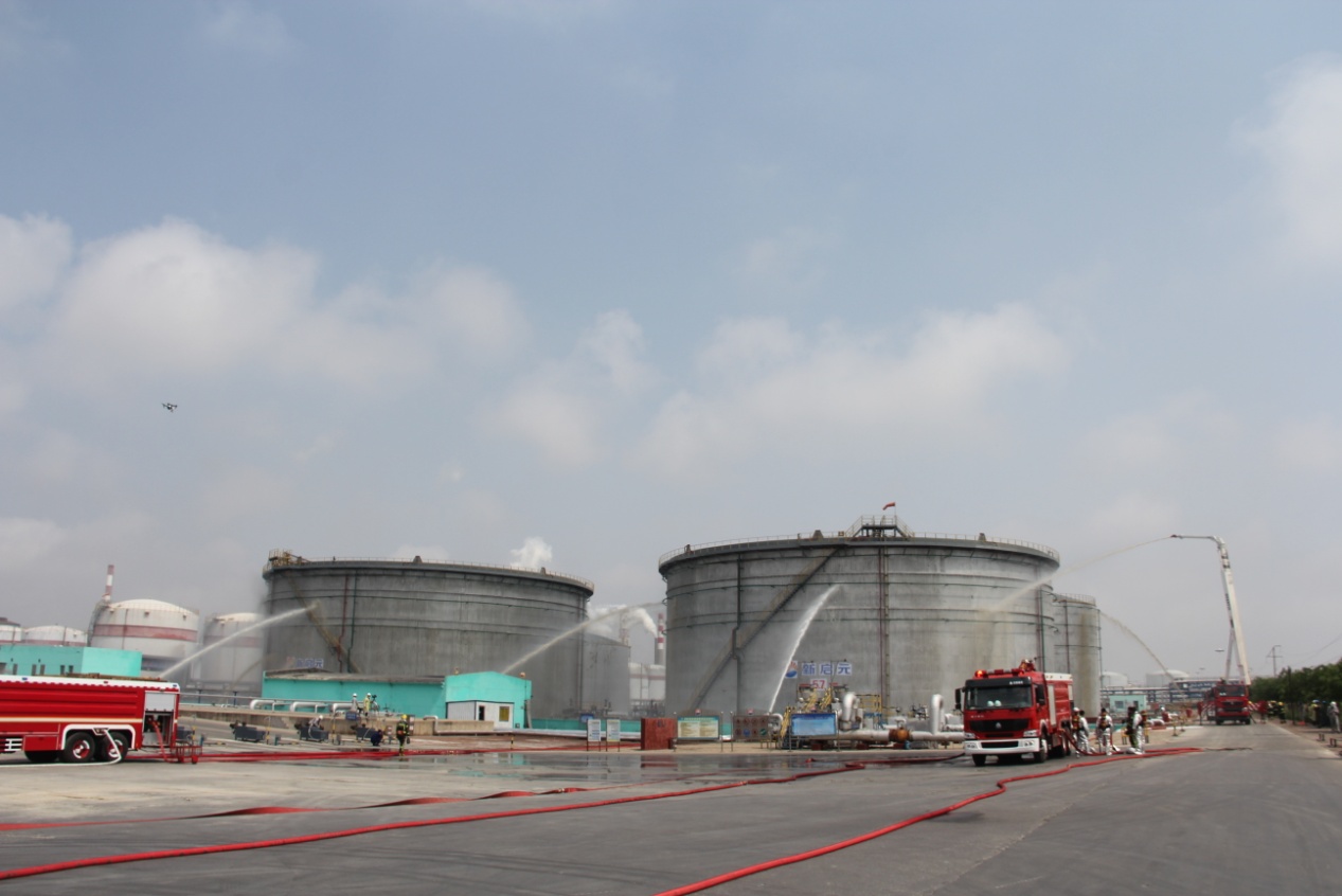 上午10:00,現(xiàn)場(chǎng)總指揮拉響警報(bào)后,演練準(zhǔn)時(shí)開始。情景模擬儲(chǔ)罐因雷擊出現(xiàn)密封圈點(diǎn)式火災(zāi),并引發(fā)泄漏著火事故,因企業(yè)自身應(yīng)急救援力量不能及時(shí)控制火勢(shì),情況緊急擴(kuò)大響應(yīng),中捷產(chǎn)業(yè)園區(qū)啟動(dòng)應(yīng)急救援預(yù)案,調(diào)集政府消防隊(duì)、周邊企業(yè)消防隊(duì)、120救護(hù)車進(jìn)行緊急救援,各救援隊(duì)伍立即投入到救援行動(dòng)中,最終將傷員救出,火災(zāi)得到控制。通過此次演練,檢驗(yàn)了園區(qū)危險(xiǎn)化學(xué)品應(yīng)急預(yù)案的科學(xué)性和實(shí)用性,進(jìn)一步提高了企業(yè)面對(duì)突發(fā)事件的應(yīng)急處理能力和協(xié)調(diào)作戰(zhàn)能力,以及?;坊馂?zāi)事故應(yīng)急管理救援水平,進(jìn)一步提升了應(yīng)急救援體系和應(yīng)急預(yù)案的可行性、緊密性、可靠性。