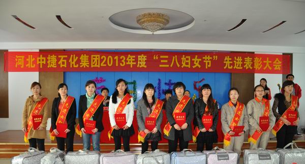 為了紀念“三八”國際勞動婦女節(jié),表彰在過去一年中表現(xiàn)突出的先進女工,中捷石化集團組織各所屬公司于2013年3月8日在華潤瀝青會議室舉辦2013年度“三八婦女節(jié)”先進表彰大會,出席本次會議的有中捷產業(yè)園區(qū)工會主席姜淑芹、中捷產業(yè)園區(qū)計生局局長楊小、中捷產業(yè)園區(qū)工會財務部部長朱瑞玲、集團常務副總經理劉國新、集團副總經理張鵬、集團總工程師耿萍。